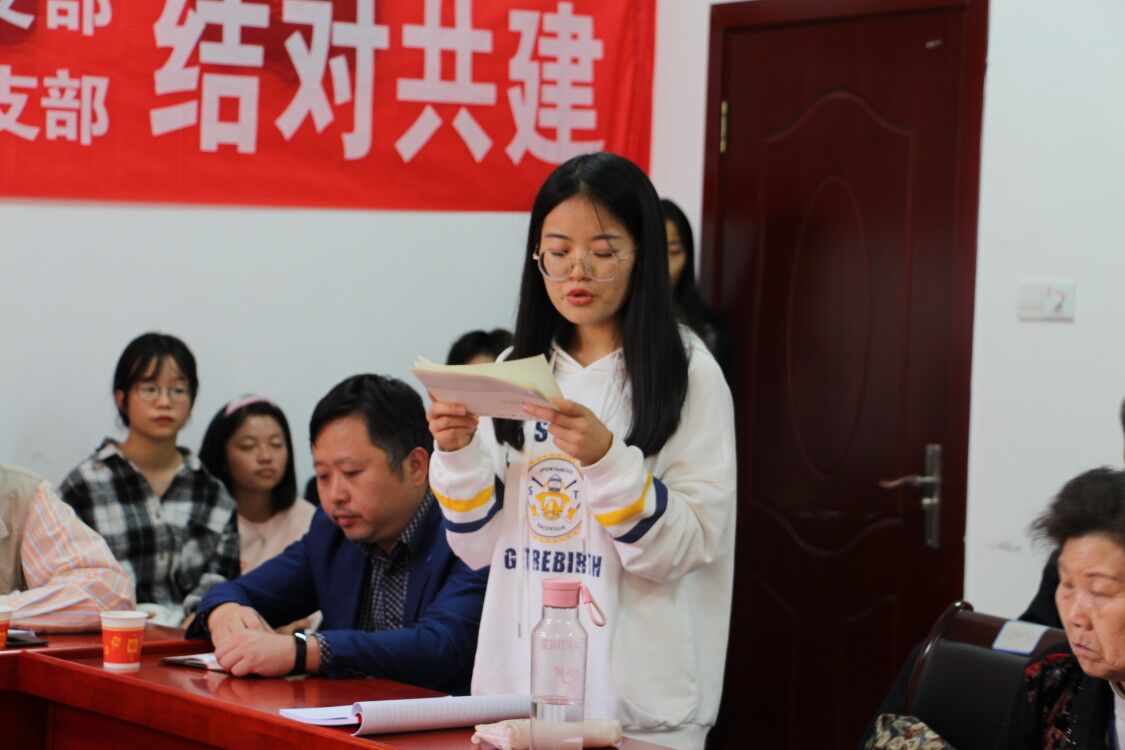 会议以“新老党员共携手,不忘初心为始终”为主题。在会议伊始,乐鱼网页版在线登录学生第四党支部书记倾文丽代表学生第四党支部对离退休处第十六党支部老党员的到来表示热烈的欢迎,对离退休处第十六党支部选择与学生第四党支部结对共建表示衷心的感谢,学生第四党支部全体同志今后将会认真向各位老党员学习,做一名合格的共产党员,一名优秀的共产党员。