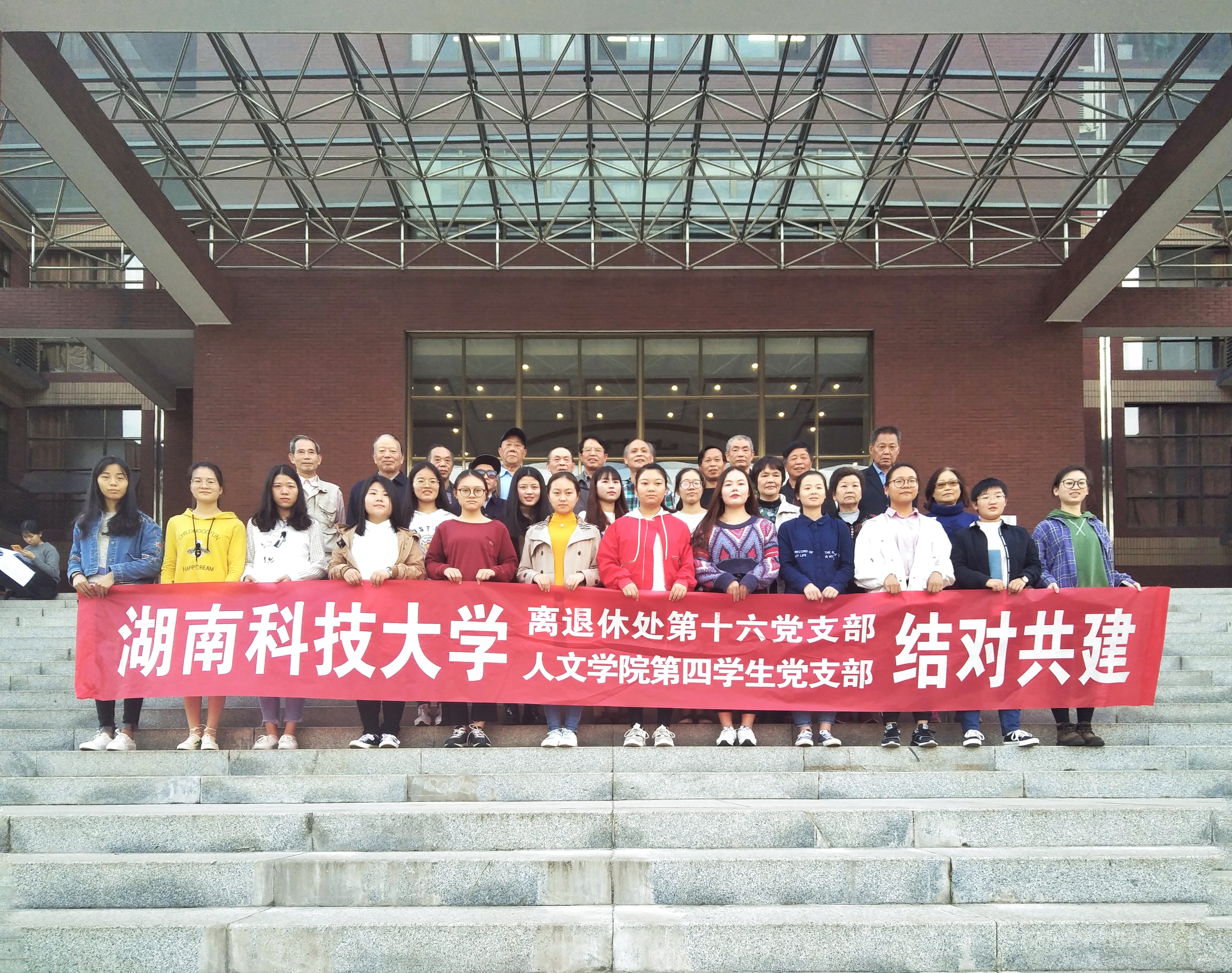 第四学生党支部的青年党员听了老党员发言后,纷纷表示深受教育,收获颇多,并表示在今后的学习工作生活中一定严格要求自己,努力学习,践行入党誓词。最后,两个支部还就近期的具体活动安排进行了协商并合影留恋。