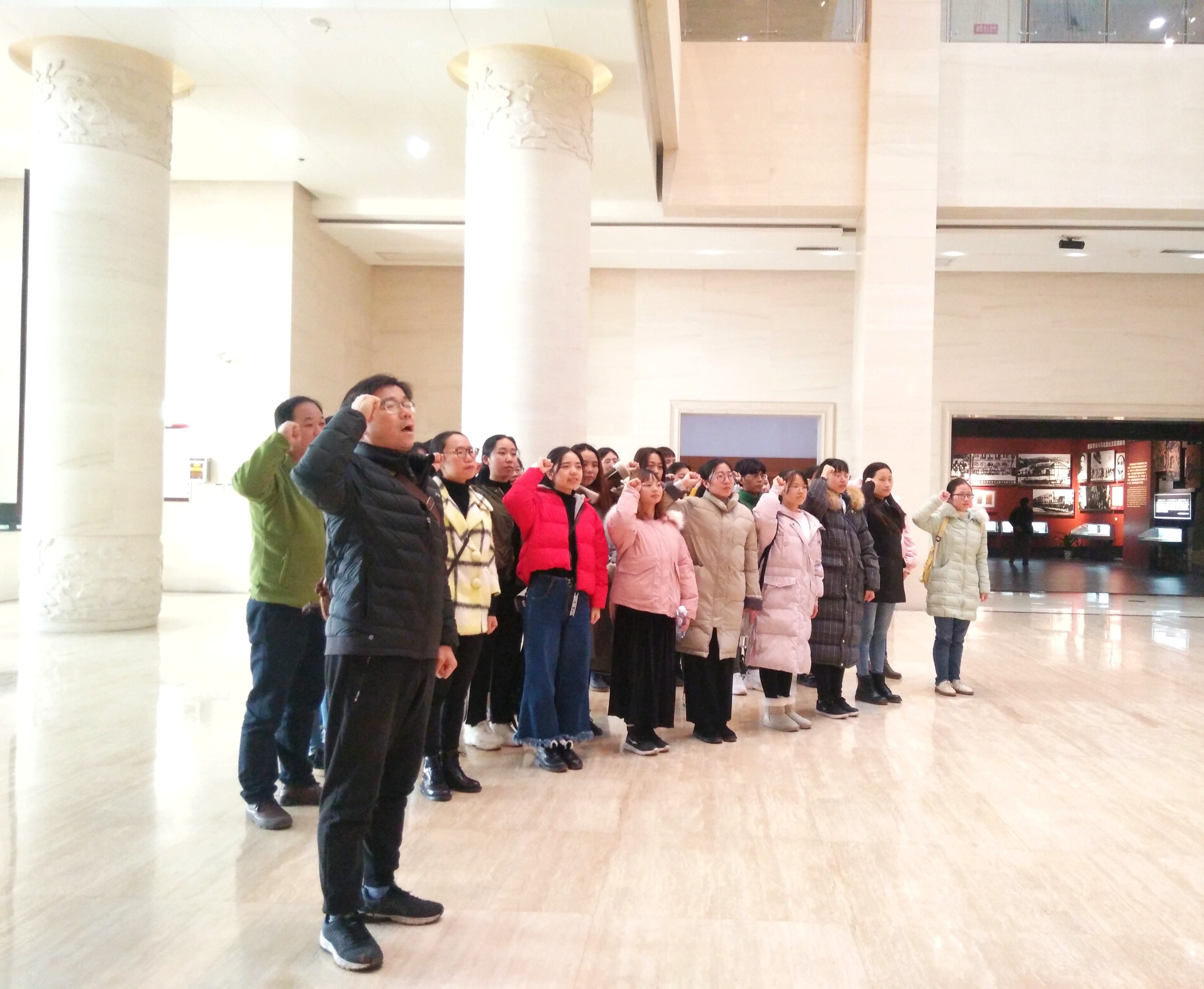 时间匆匆流逝,17时全体人员结束参观,乘车返回学校。返程途中,马忠石老师总结了此次学习之旅,并要求大家始终牢记入党誓词,增强党员意识,不断提升自己,进一步端正入党动机,要向优秀的共产党员学习,要有奉献精神和服务意识,更要有责任担当!