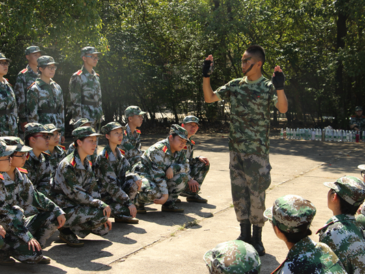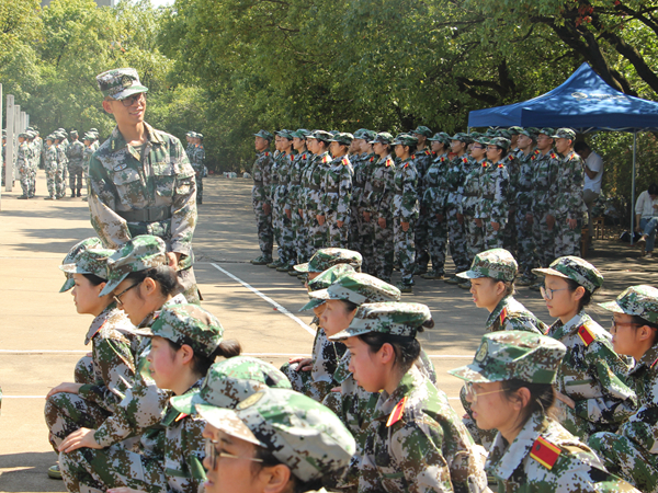 上午八点,我院2018级新生八个排的“新兵”个个身穿迷彩军装,在北校田径场集合,参加2018级新生军训动员大会,印有“乐鱼网页版在线登录”的大旗飘扬在我院新生队列的最前方。动员大会上,我院新生认真听取学习了副校长的报告、教官代表的发言,欣赏了教官们带来的精彩表演。会后,全体新生由各排教官带领,前往位于训练场地—北校旧篮球场,开始正式训练。“拇指尖贴于食指第二关节,中指贴于裤缝……”教官从最基础的军姿动作要领开始亲自示范,在一声声刚劲有力口号下,新生们一丝不苟的完成立正、稍息、跨立、坐下、起立等训练任务。