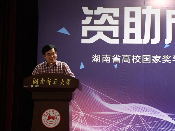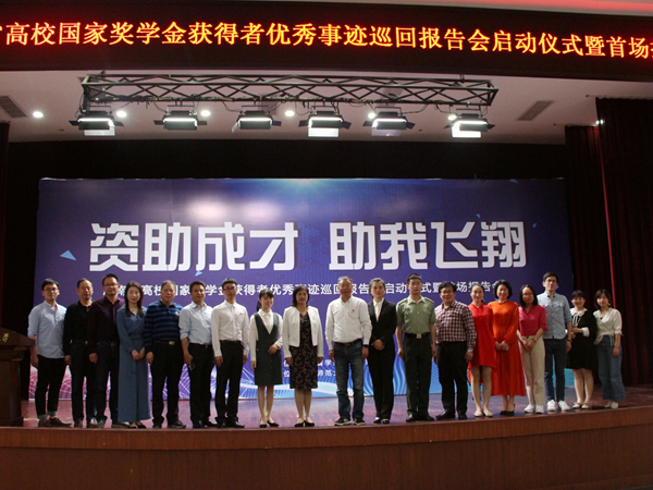 5月10日,“资助成才•助我飞翔”2019年湖南省普通高校国家奖学金获得者优秀事迹巡回报告会在湖南师范大学国际学术交流中心举行。湖南省教育厅巡视员左清,湖南师范大学副校长周俊武,湖南省学生资助管理中心主任伍光强,副主任杨昌江、王平出席会议,乐鱼网页版在线登录由乐鱼网页版在线登录王嘉敏老师带队与会。