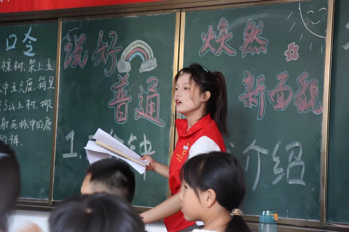“我觉得普通话对于现在的小学生来说很重要,通过这几天的教学以及课后的调研,我们了解到这里的孩子很多都带着本地的乡音,其实有些孩子们也认识到说话不太标准,所以他们不敢上台讲话。”志愿者龙杨慧面带严肃地说道。