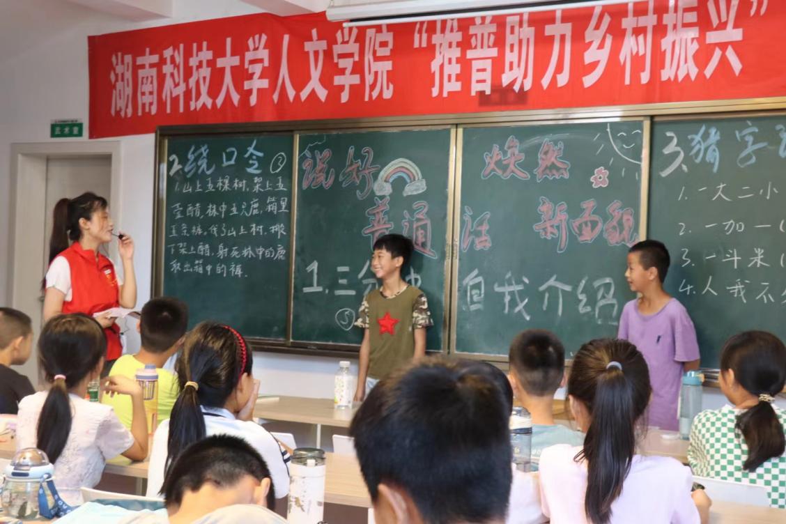 7月9日上午,株洲攸县石羊塘镇儿童之家传来了一阵又一阵的鼓掌声,四年级孩子们的欢笑声此起彼伏地传来。走进教室一看,是志愿者龙杨慧在教孩子们读绕口令。“发扬国风,从说中国话起;说中国话,从普通话开始。”为了圆满完成推普助力乡村振兴的志愿服务目标,在乡村大力推广普通话,传承优秀传统文化,为此乐鱼网页版在线登录乐鱼网页版在线登录“三下乡”实践团队在暑期学校展开三下乡特别课堂第三期:说好普通话,焕然新面貌。