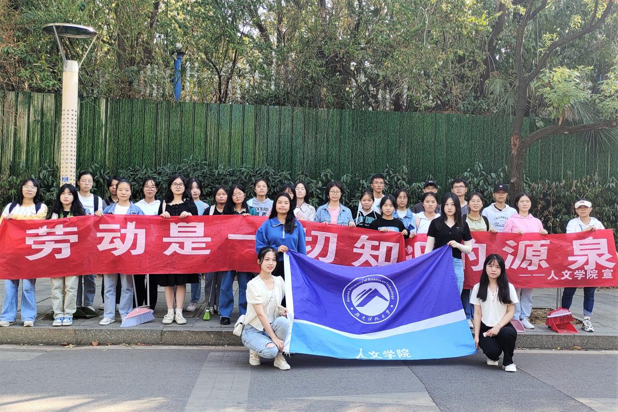 下午两点,同学们拿着扫把、簸箕、垃圾袋等劳动工具准时到达集合场地。进行签到后,负责人将各班带至分配好的劳动区域。有的同学拿着扫把扫落叶,有的同学戴着手套沿着马路捡拾各种垃圾,经过一个多小时的努力,区域内的垃圾被清扫干净,大家一起举着“劳动是一切知识的源泉”的横幅合影留念。临走前,同学们将自己打扫的垃圾打包扔进附近的垃圾桶,为此次劳动教育户外实践课程画上圆满的句号。