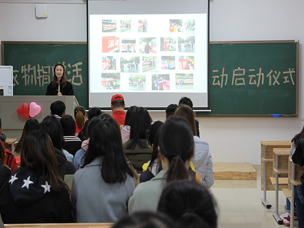 启动仪式上,商学院青年志愿团指导老师陈翠在发言中高度赞扬了本次衣物捐赠志愿活动,她说,“赠人玫瑰,手有余香。但衣物捐赠志愿活动种下的是一片玫瑰园。”商学院青年志愿团副部长陈婧雯介绍了本次志愿活动的进展情况——322日,志愿团在学校各区进行摆点宣传,在学生中间获得了良好反响,经过多方努力,已在我校引进了13个回收箱。