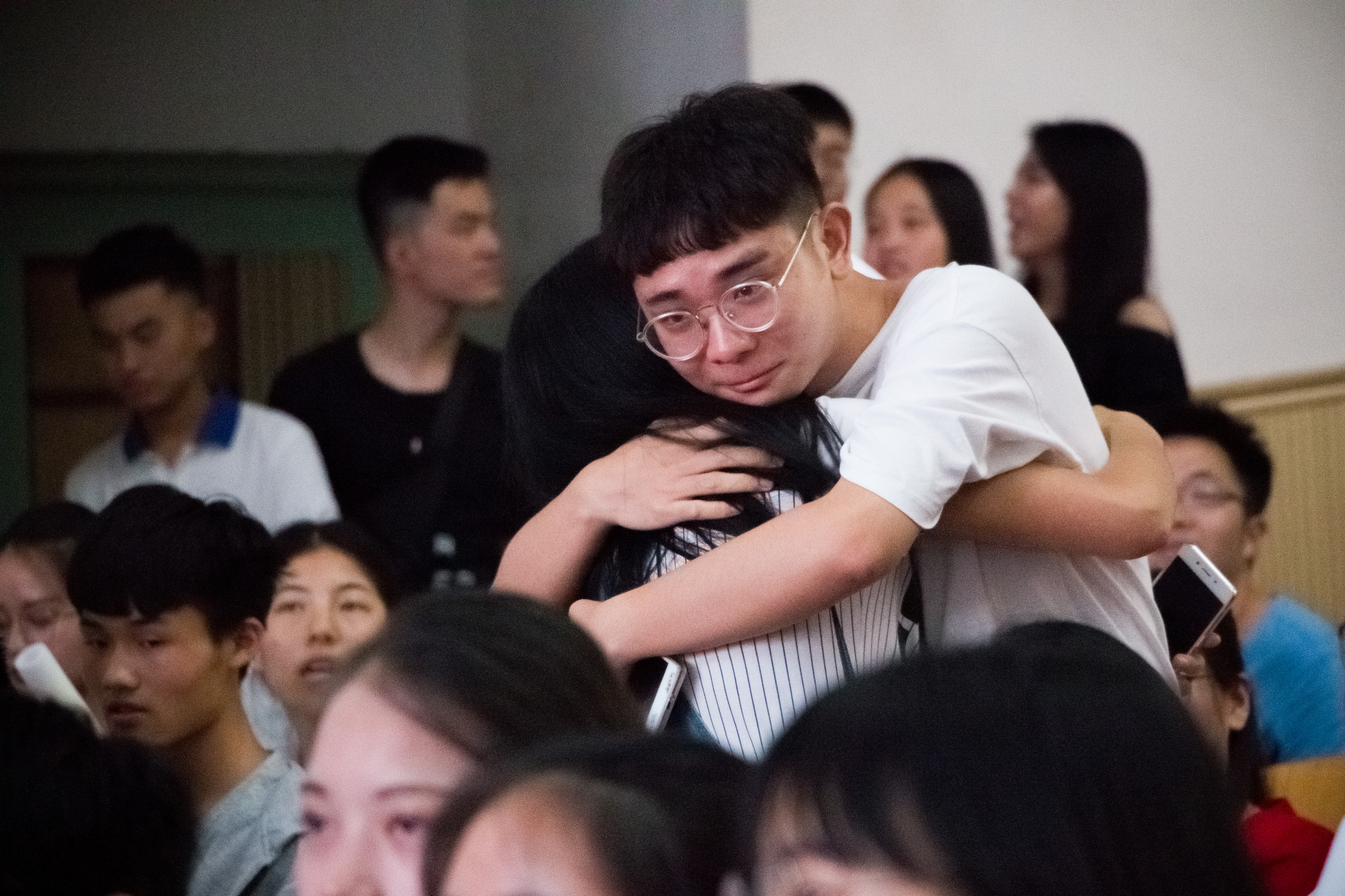 晚会进行到尾声,是优秀毕业生们的倾情合唱串烧,《小幸运》、《凉凉》、《光阴的故事》、《See you again》,或清新惆怅,或古韵馨香,或伤感难过,一曲曲娓娓唱来,惹人落泪。回放着毕业照的深邃背景下,毕业生们列成整齐的三排,随着歌声身体轻轻起伏,从开始到曲终,有许多人唱着唱着就流下眼泪,泣不成声。正如最后一首大合唱《时间煮雨》所说:明月夜送君千里,等来年秋风起。相聚离开都有时候,没有什么会永垂不朽,歌曲总有唱完的时候,晚会总有剧终时,但故事和情怀永不落幕。舞台上的戏曲演尽人间悲欢,而大学生的人生里却还有风华正茂的锦绣大道。