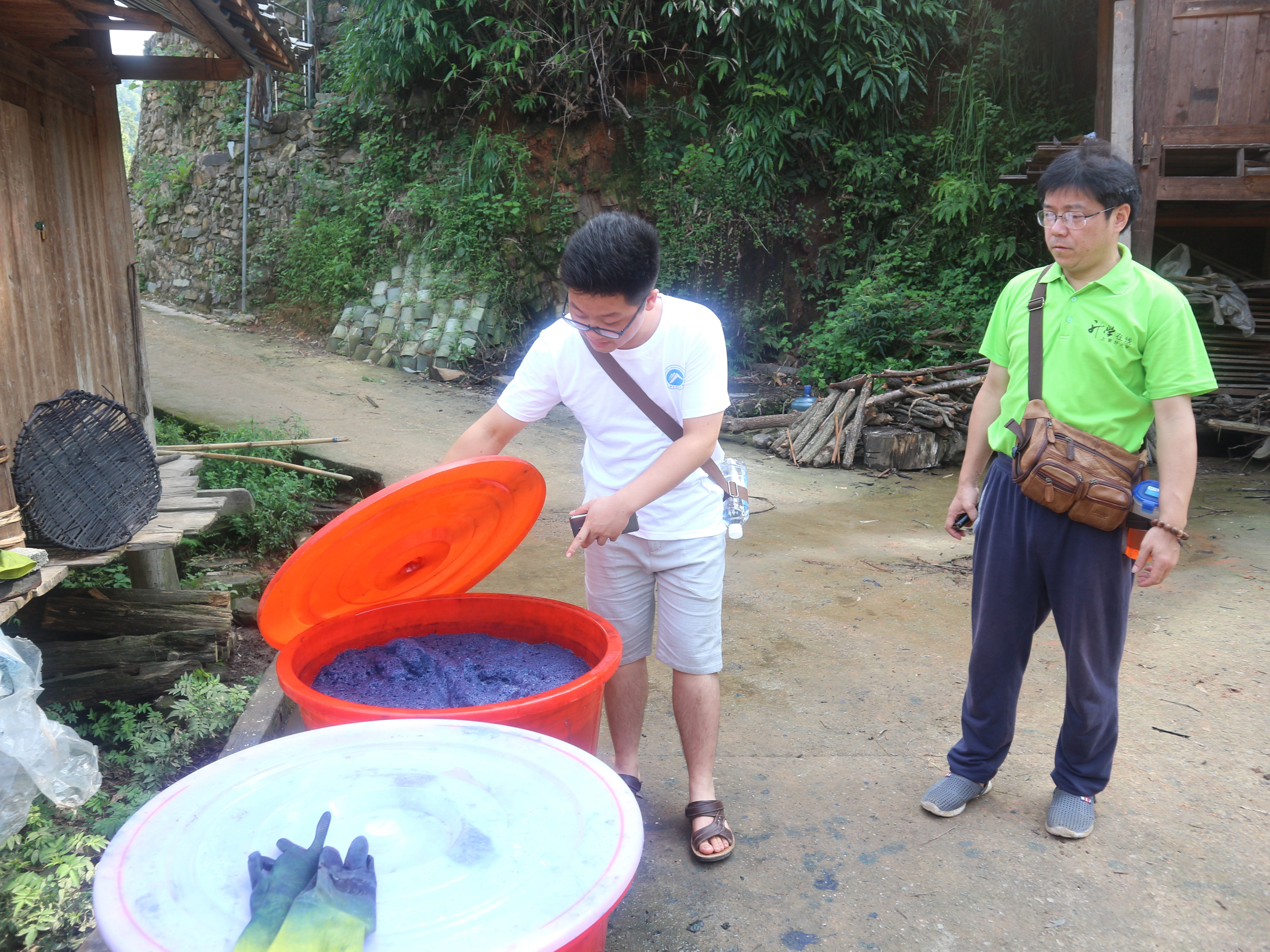 (图为乐鱼网页版在线登录研究生暑期科技服务团成员在仔细观察靛蓝染缸)