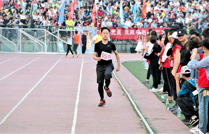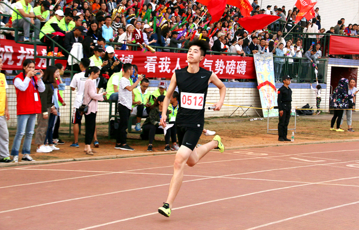 我院14级的杜萌,今年已经是一个大四的学长。大学四年,他每一年都参加了校运会。从大一参加时的紧张和兴奋,不考虑成绩,到大四时为了学院集体荣誉而战,杜萌与运动会的故事中充满了难忘的回忆。今年他参加的是男子4x400米接力赛,第一次跑第四棒,杜萌整体状态还不错,但仍有些不适应,也导致了在后面冲刺阶段腿有些发软,但他并不气馁:“人文的每一个运动员能参加并且坚持跑下来,对于我们来说就是胜利。”