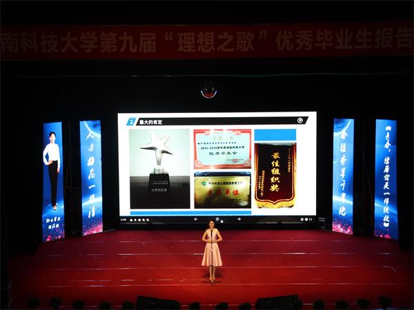 6月10日晚,第九届“理想之歌”优秀毕业生报告会在俱乐部隆重召开。十位报告人在此追忆青春过往,共诉锦瑟年华。本次报告会由校招生就业处主办,乐鱼网页版在线登录承办。我校副校长胡石其、相关职能部门和各学院领导出席本次报告会,还有来自各学院的上千名学生到场聆听。