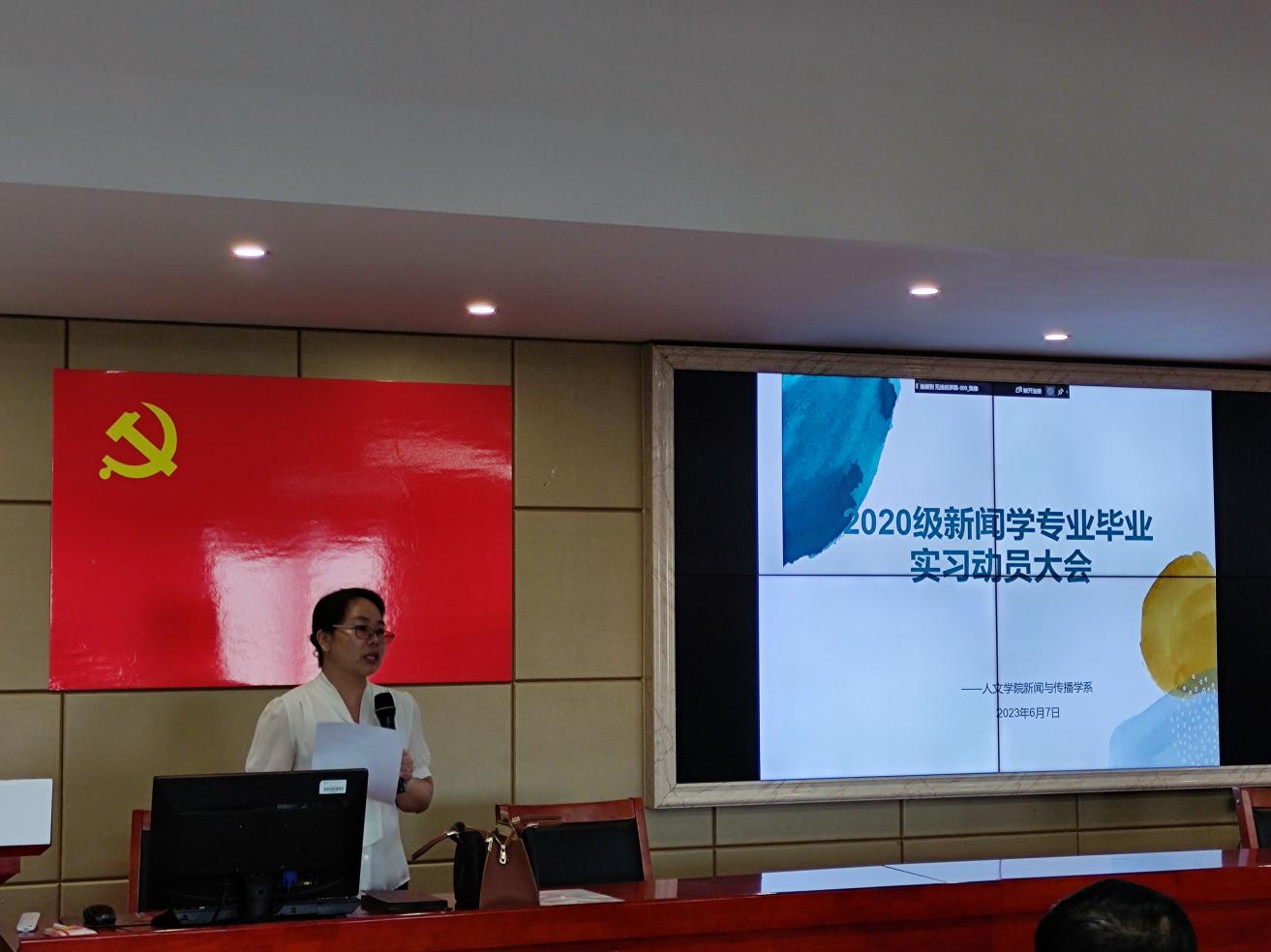 6月7日下午,我院2020级新闻学专业毕业实习动员大会于立言楼B4-1室顺利召开。本次大会由乐鱼网页版在线登录新闻系主办,乐鱼网页版在线登录副院长袁星洁,新闻系主任刘艳凤、副主任王超群、新闻系老师、20级本部及潇湘新闻专业学生参加本次会议,会议由刘艳凤主持。