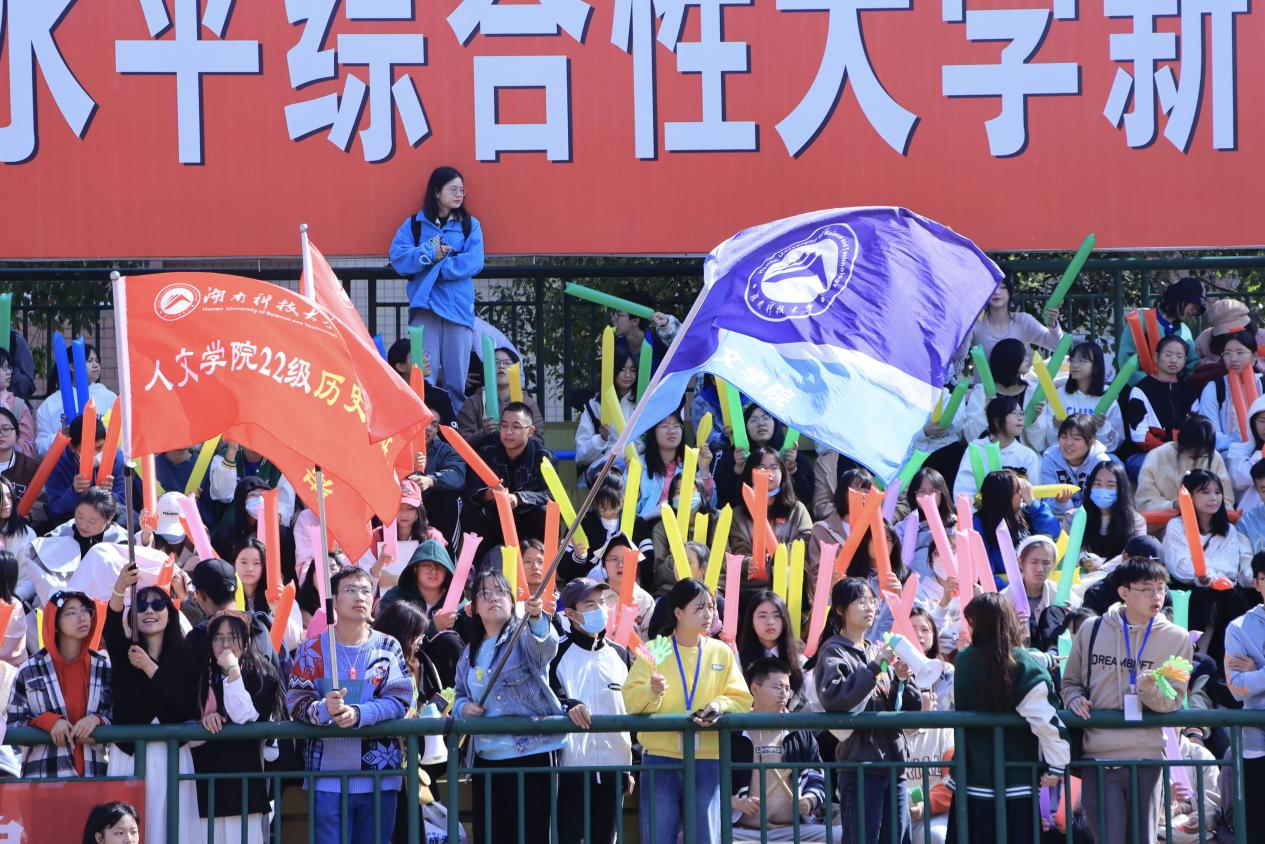 赛道外,乐鱼网页版在线登录观众席上的同学们更是热情洋溢,为赛道上的人文健儿们竭尽全力挥舞院旗,助威声、呐喊声不绝于耳,激情澎湃的声音将整个场面渲染的无比热闹。“我在奔跑的时候听到了大家的加油声,这些声音给了我极大的力量。”22级广告一班曾嘉瑶在比赛结束后非常兴奋激动,“加油,人文健儿们!尽力了就是最棒的!”