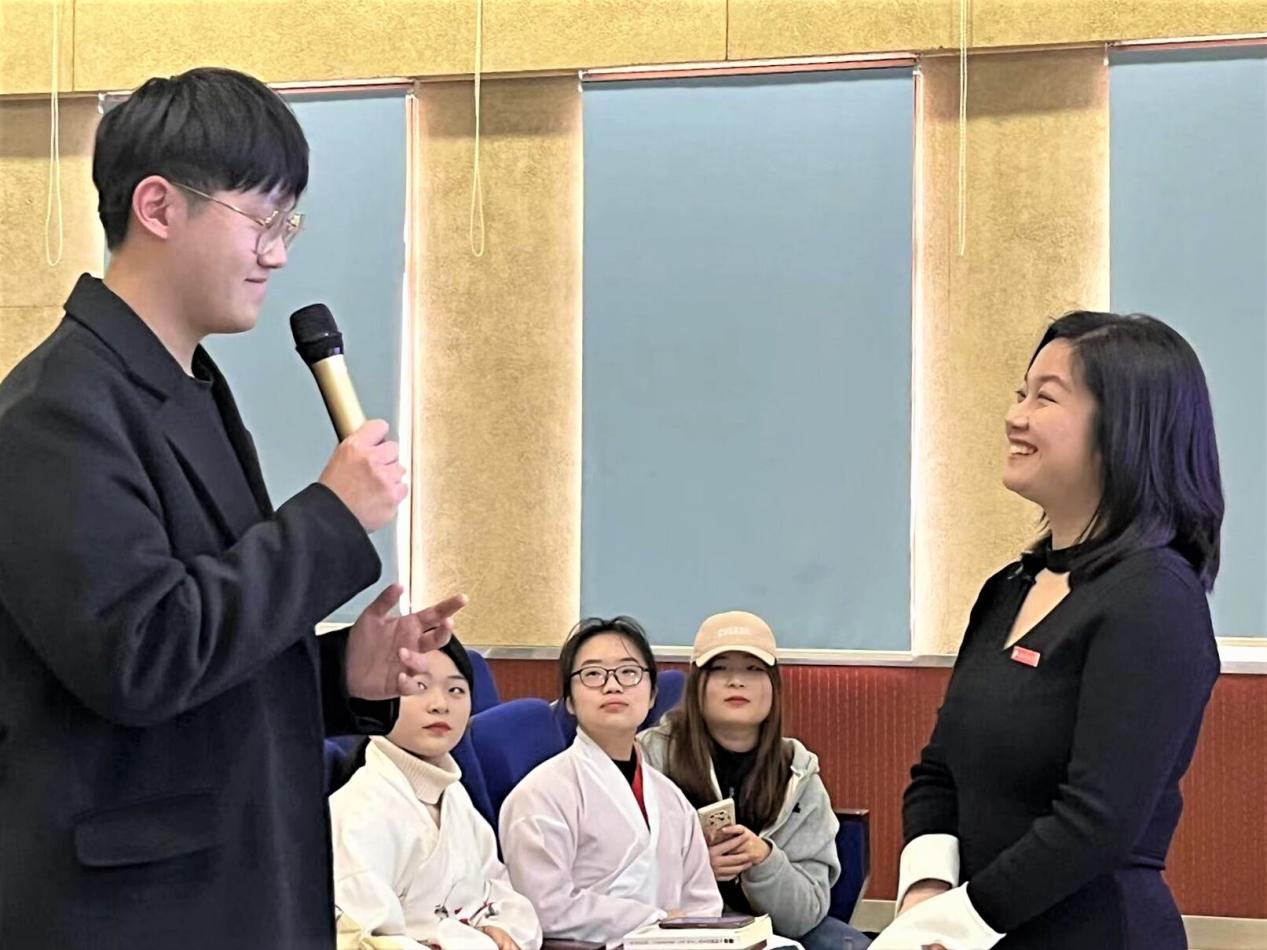 李文浩老师曾获湖南省教师课堂竞赛一等奖,湖南省教师创新大赛二等奖,教学能力突出,课堂魅力十足。她以深厚的文化底蕴,充满感染力的语言,细腻的课程讲解展示了教学片段;同时又能耐心、细致、积极地和大家开展互动。同学们听完课后,收获满满,深受启发。