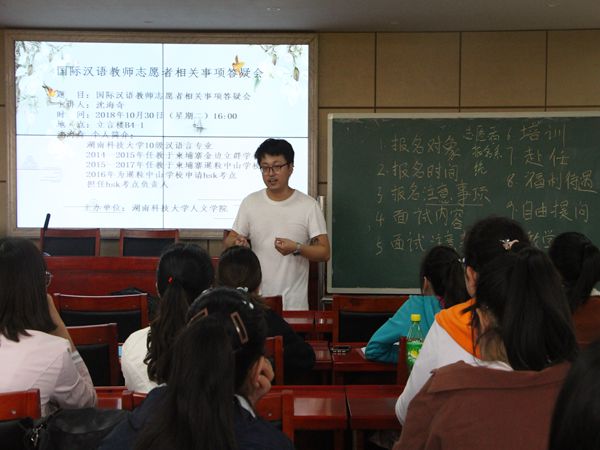 为给想成为国际汉语教师志愿者的同学答疑解惑,10月30日,我院于立言楼B 4-1举行了“国际汉语教师志愿者相关事项答疑会”。此次会议由沈海奇老师主讲,对汉语教师志愿者有兴趣的本科生、在读研究生到场聆听。