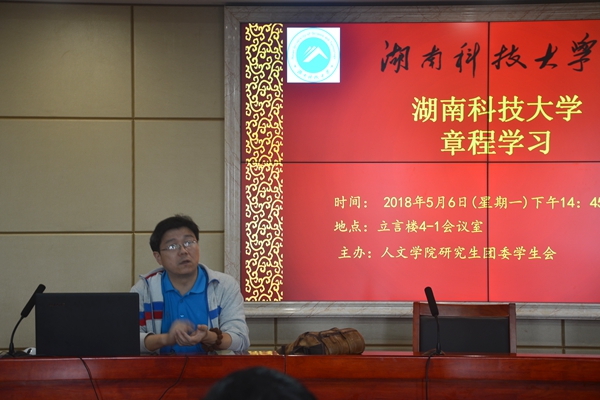 5月7日下午,我院于立言楼4—1会议室组织研究生集体学习《乐鱼网页版在线登录章程》。研究生辅导员成伟明老师担任主讲人,全体研究生参加学习。