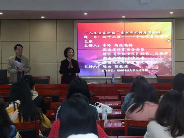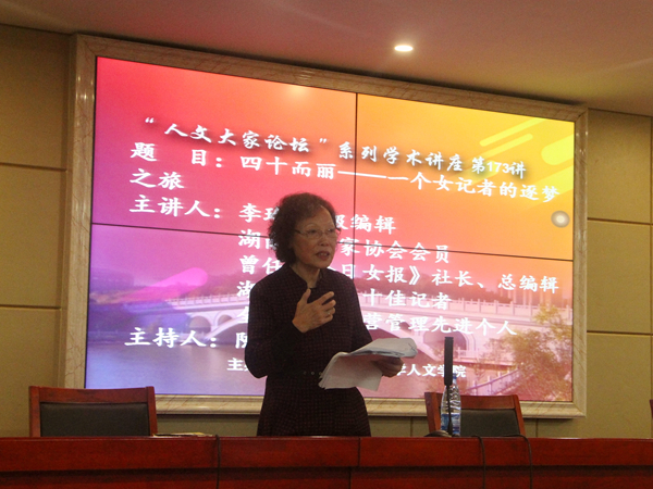 成为一名成功的新闻人应该具备怎样的精神?1016日下午,《今日女报》社前社长、高级编辑李玲做客我院人文大家讲坛,在立言楼B4-1会议室做了一场题为四十而丽——一个女记者的逐梦之旅”的讲座。李玲结合自己经历解答了成为成功新闻人的精神素质——“四要”。
