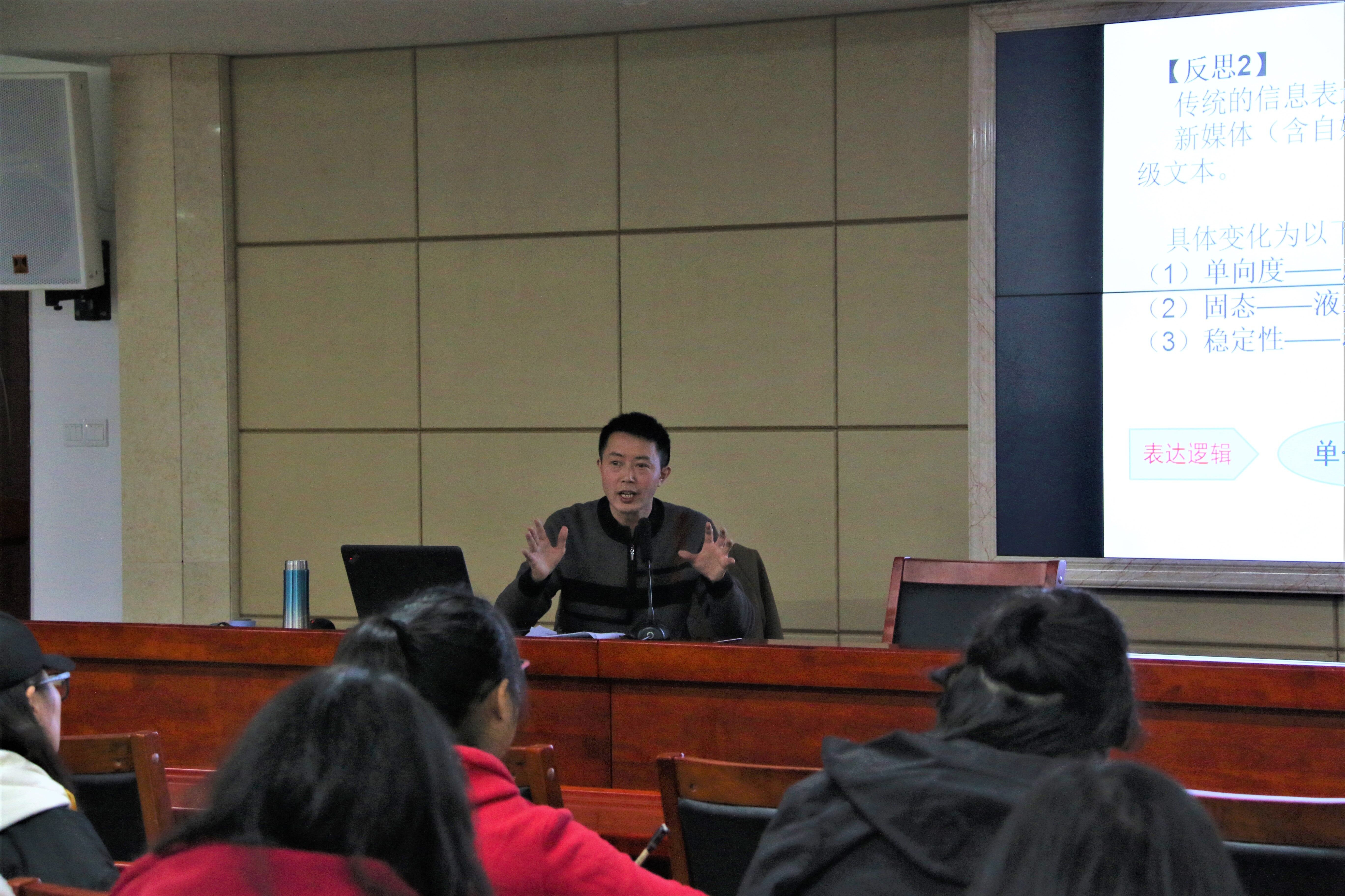 1129日晚,四川大学教授王炎龙应我院邀请于立言楼B4-1作“媒介变革下传播理念的追问与反思”的主题性讲座,此次讲座由我院陈功博士主持,我院袁新洁、黄洪珍、李康澄等老师到场聆听,1617级新闻专业的学生到场聆听。